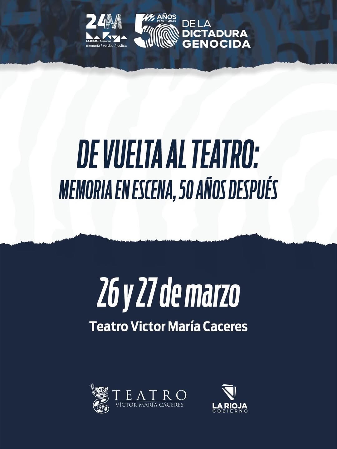 La programación incluye charlas, talleres, obras de música, teatro , danza y música , todas vinculadas a los ejes que nos convocan: Memoria, Verdad, Justicia, Democracia y Género Además presentaremos la primera edición de nuestro podcast 𝐓𝐄𝐀𝐓𝐑𝐎 𝐀𝐁𝐈𝐄𝐑𝐓𝐎, el 26/3 a las 15 hs. y a las 18:30 hs. el Taller Performático "𝐍ú𝐦𝐞𝐫𝐨𝐬: 𝐥𝐚 𝐦𝐞𝐦𝐨𝐫𝐢𝐚 𝐜𝐨𝐦𝐨 𝐚𝐜𝐜𝐢ó𝐧". 20 hs. Espectáculo "𝐏𝐨𝐞𝐦𝐚𝐫𝐢𝐨 𝐯𝐢𝐯𝐨".
