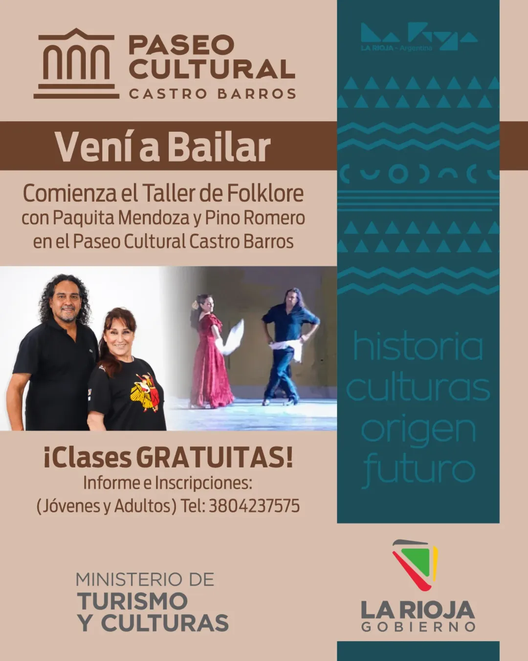 Inscribite al taller folclórico con Paquita Romero y Pino Romero.