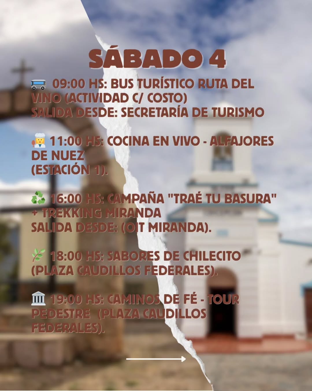 Conocé las actividades que Chilecito tiene para vos. Bus Turístico de la Ruta del vino, Cocina en vivo, Trekking por Miranda, Sabores de Chilecito, Tour pedestre.