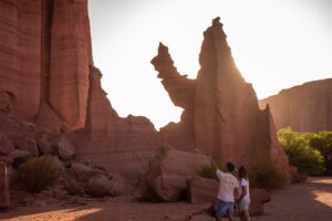 • Cañón de Talampaya en vehículo: el circuito clásico que recorre formaciones emblemáticas como La Catedral, El Monje y los petroglifos ancestrales.